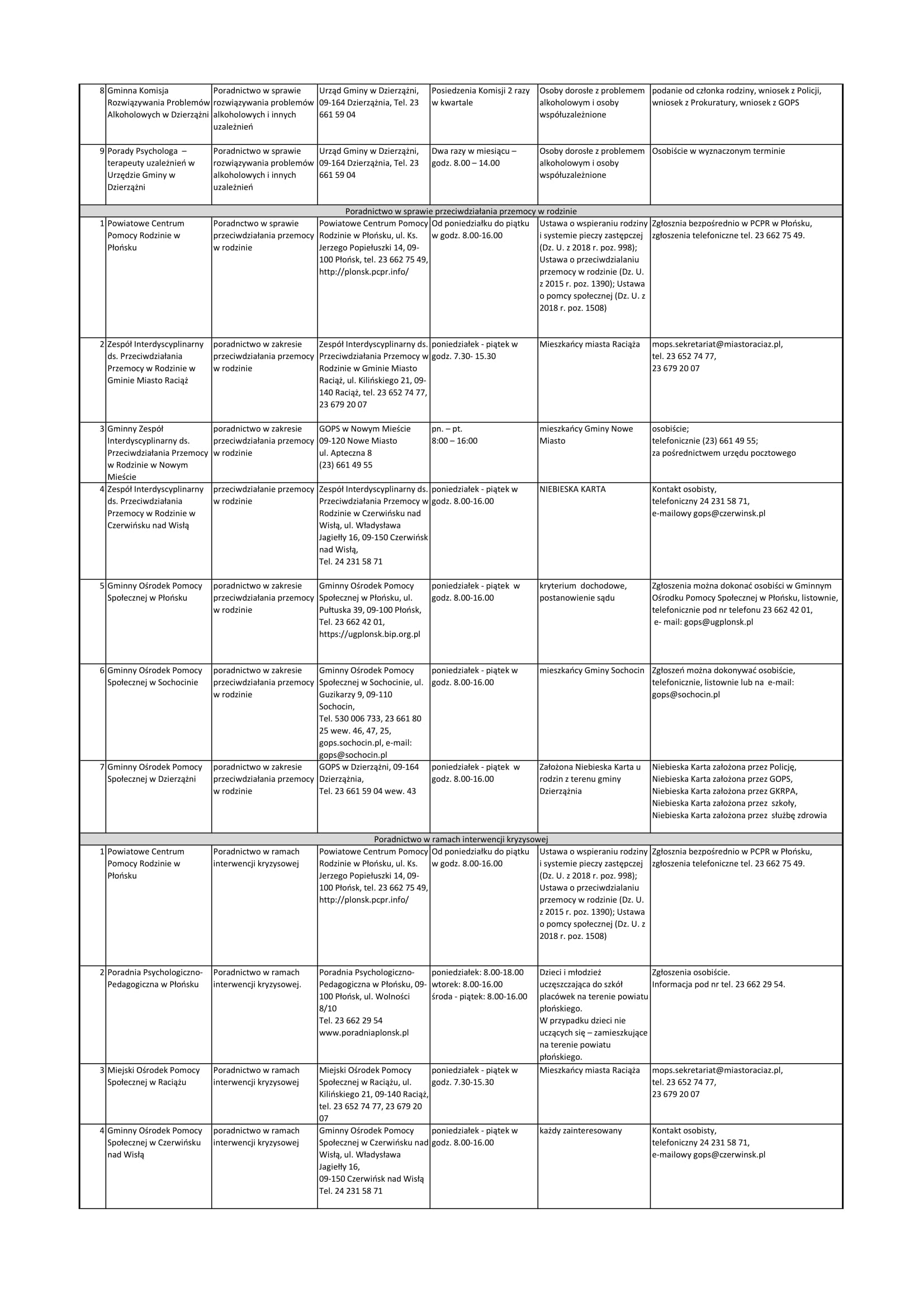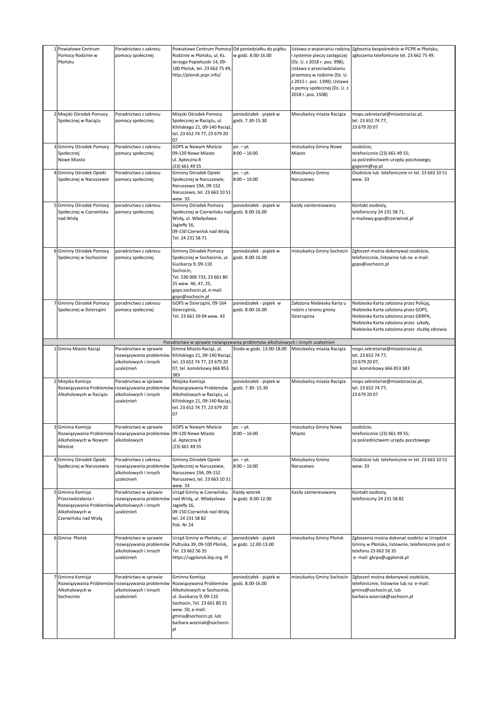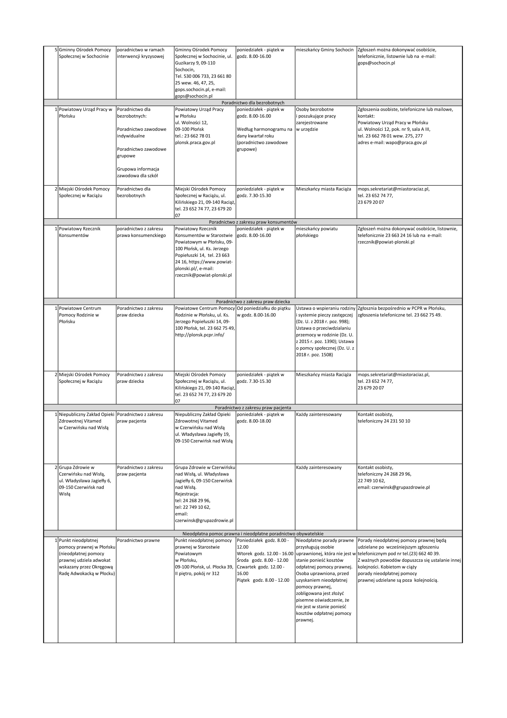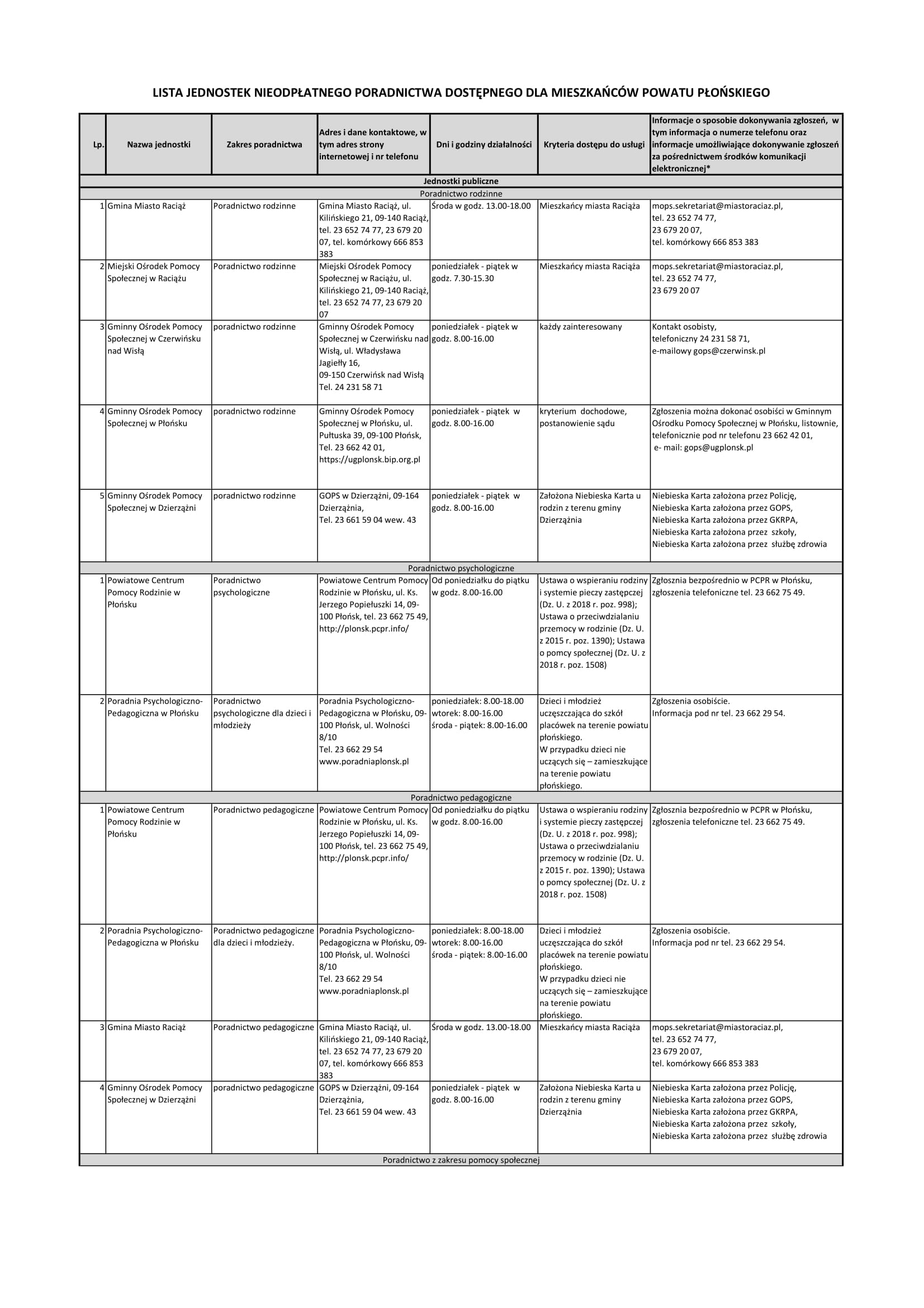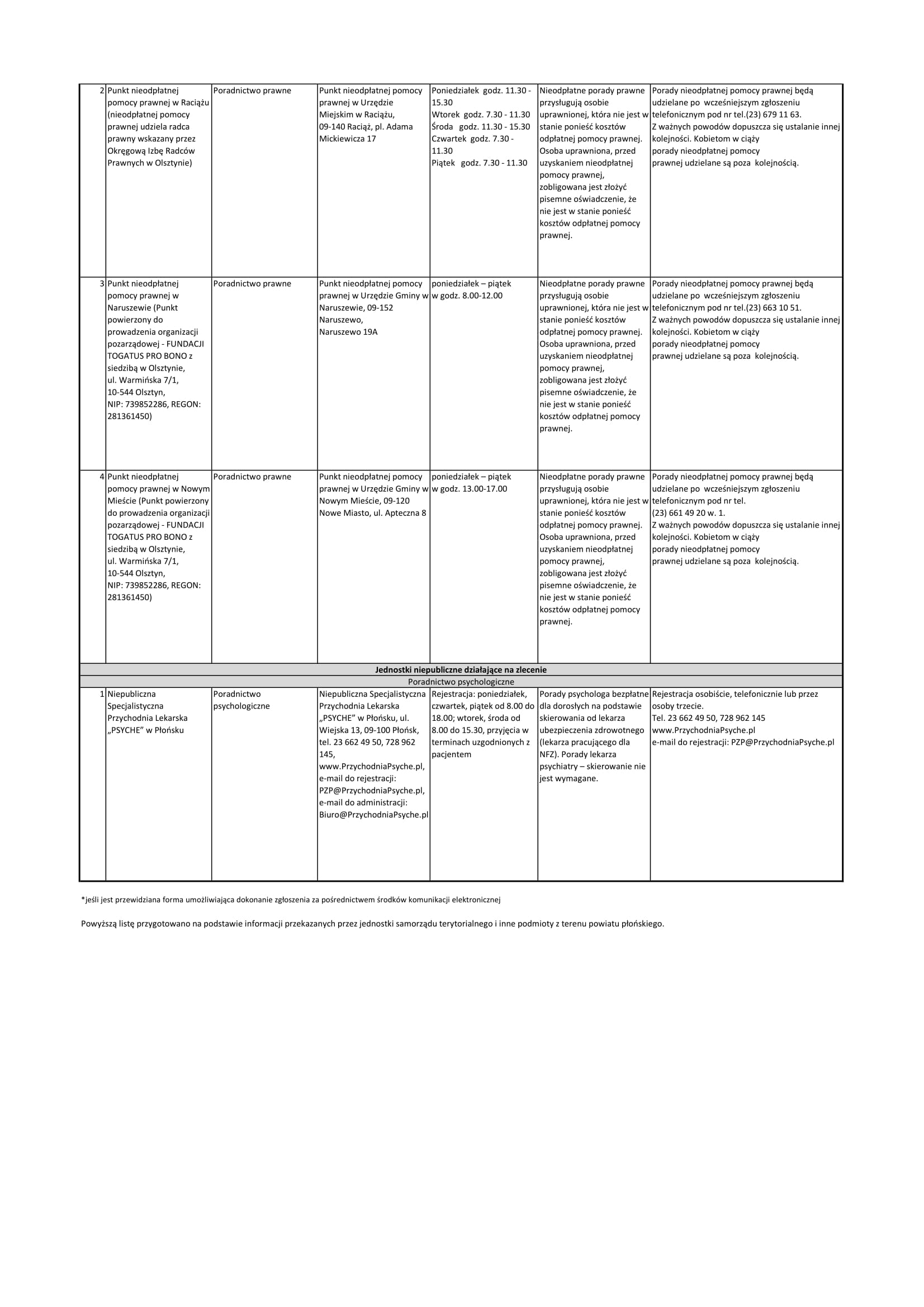 Lista jednostek nieodpłatnego poradnictwa dostępnego dla mieszkańców powiatu płońskiego - Pobierz (95.94 Kb)