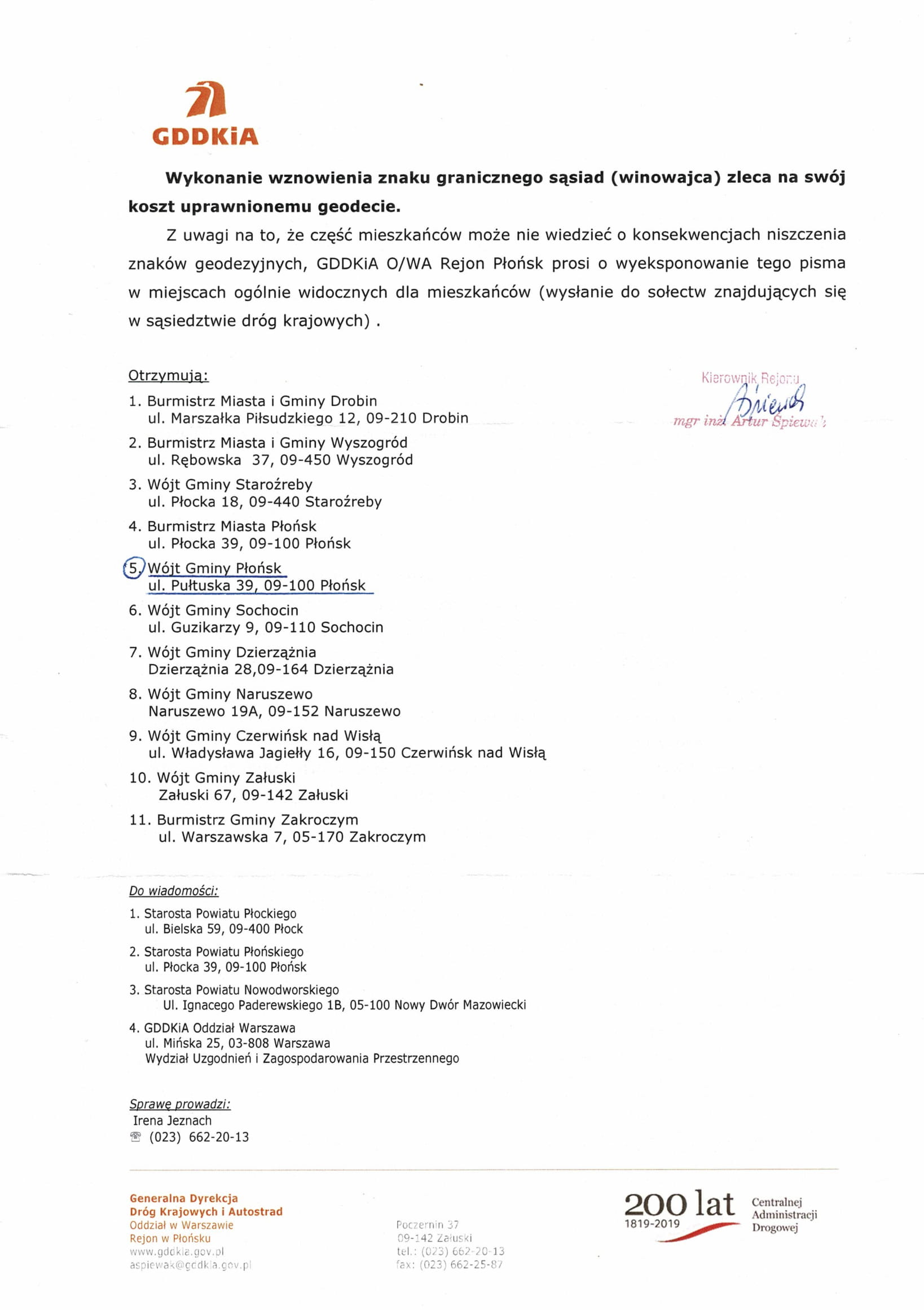 Informacja dotyczy obowiązku ochrony znaków granicznych pasa drogowego.