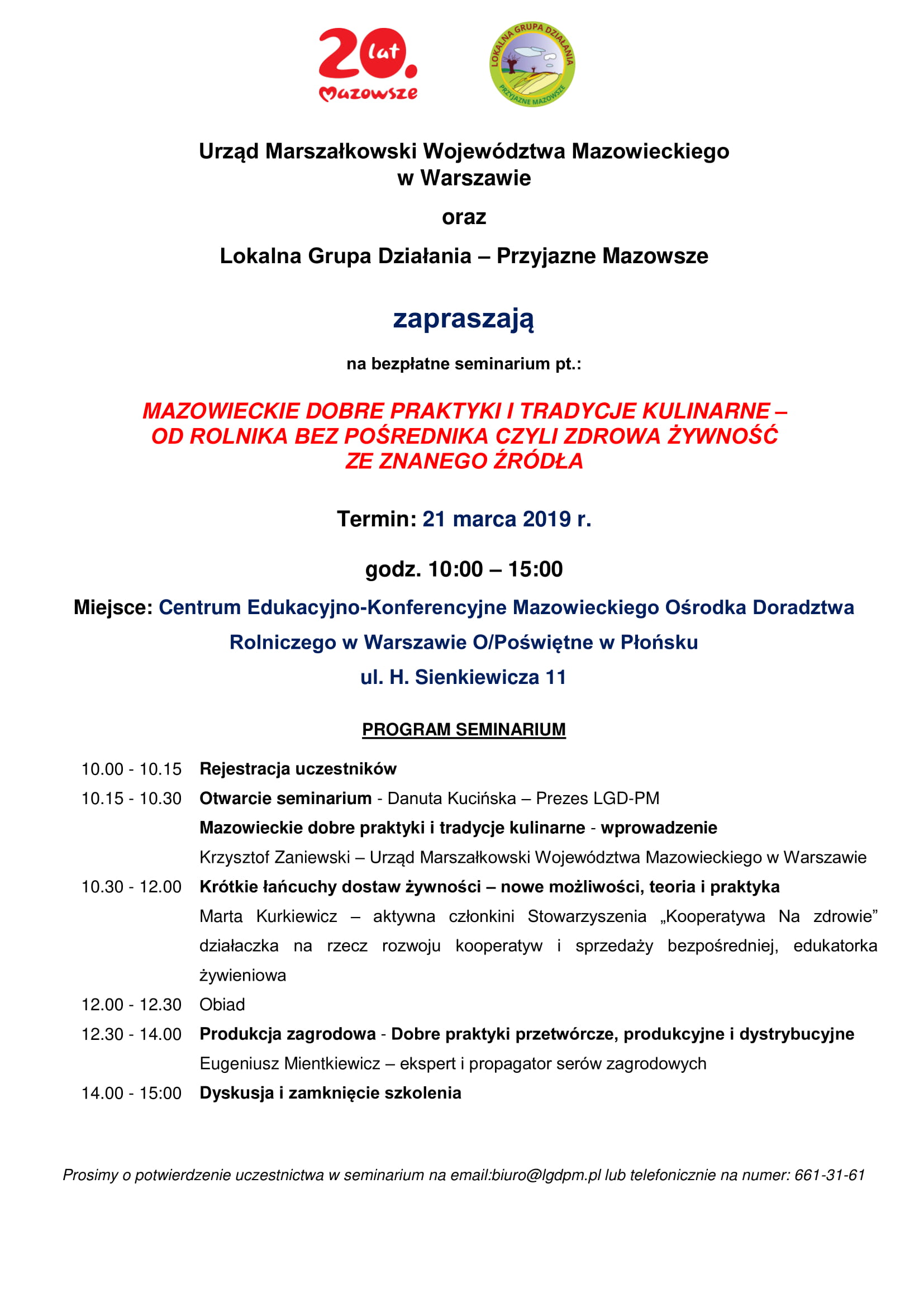 Urząd Marszałkowski oraz LGD – Przyjazne Mazowsze zapraszają na seminarium