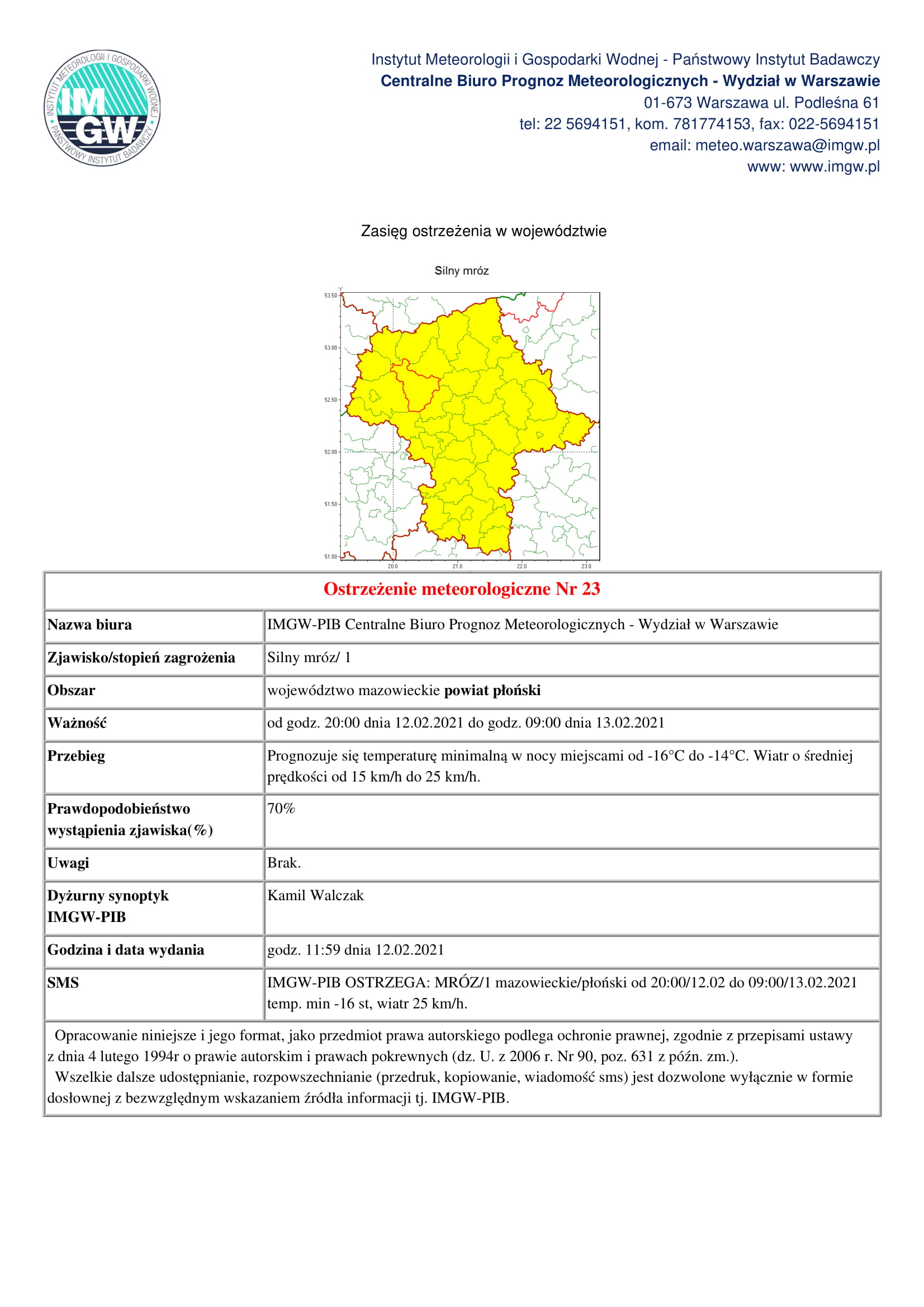 KOMUNIKAT WÓJTA GMINY PŁOŃSK Z DNIA 15.02.2021 ROKU