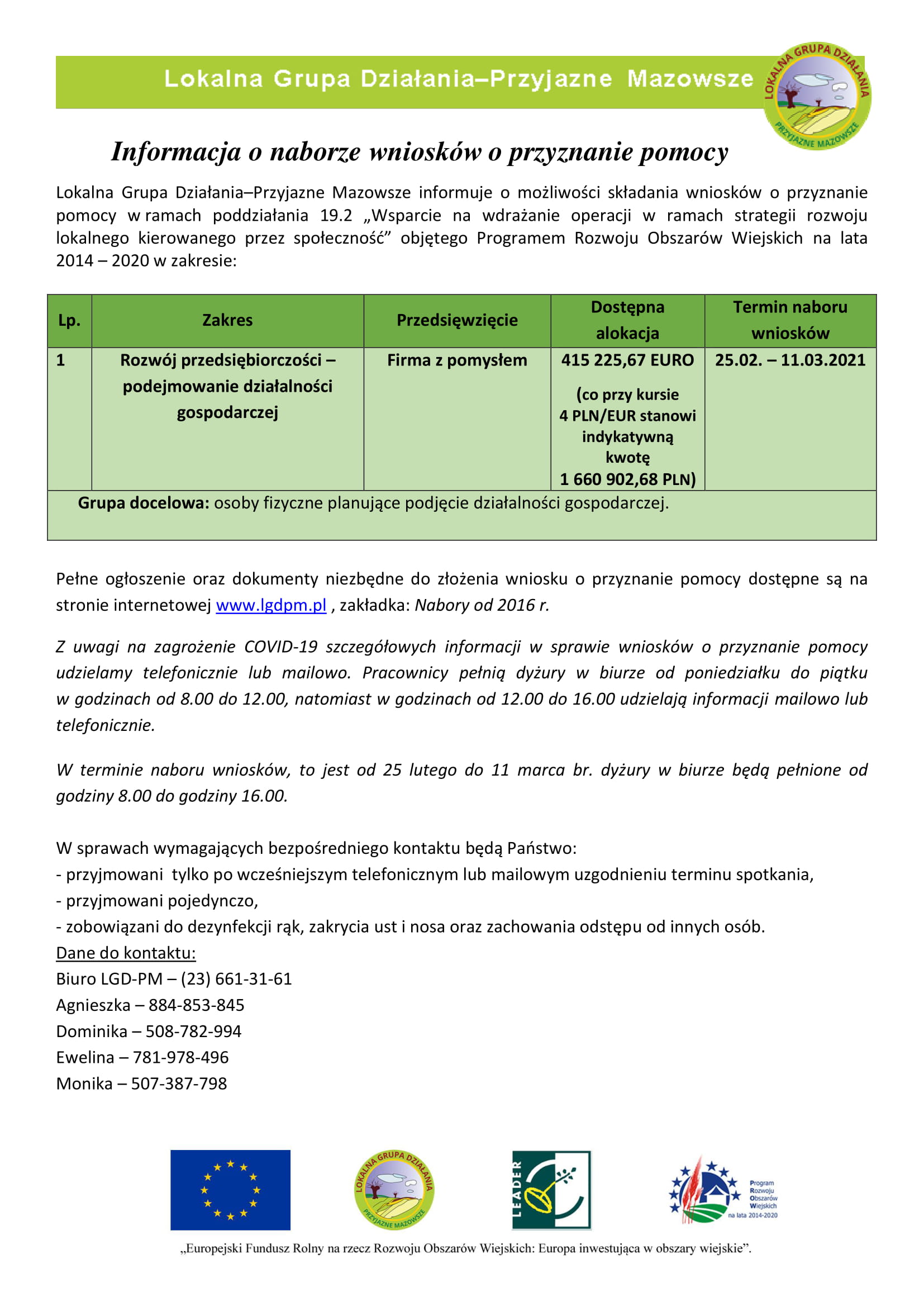 Informacja o naborze wniosków o przyznanie pomocy